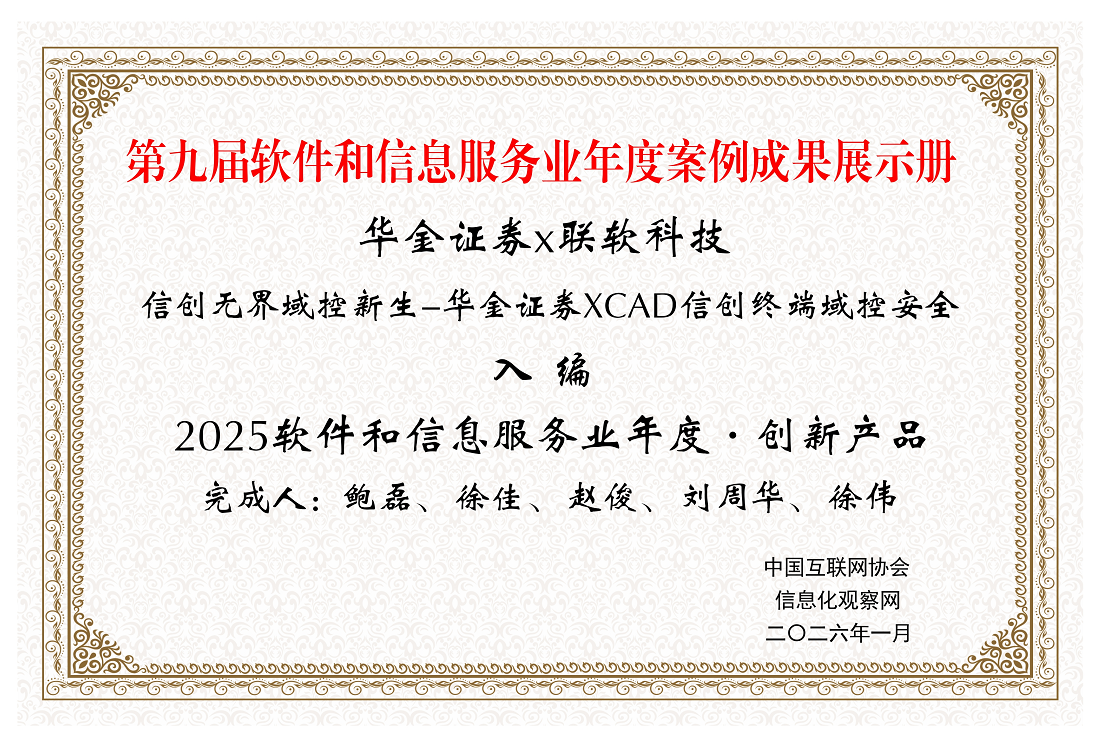 联软科技携手华金证券斩获行业大奖 打造信创域控平滑迁移标杆