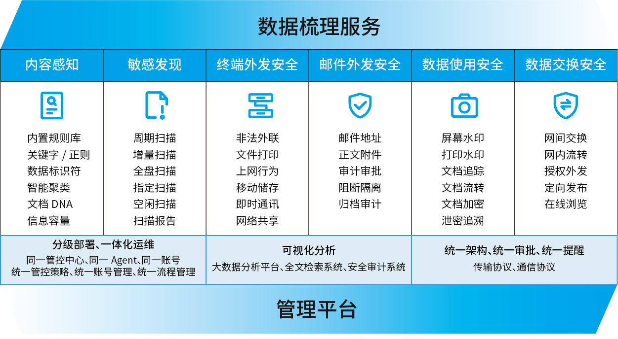 与终端一体化平台集成,降低实施与维护成本;降低敏感数据泄密风险,及时止损。