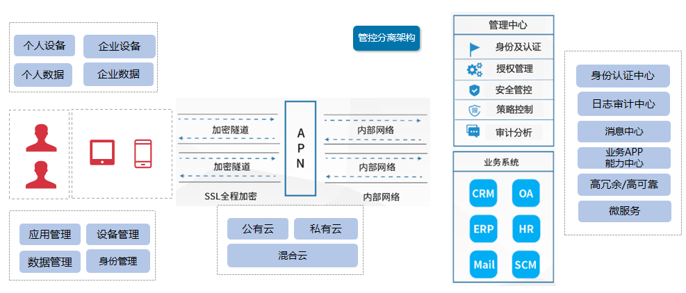 政务业务管理:以管理平台自身的业务全生命周期管理能力,灵活管理CS/BS/H5/等政务业务应用,定义业务发布上线规则,确保每个业务系统在政务外网上规范化管理,确保基于用户身份进行业务访问的整体管理效果。