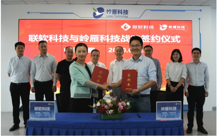 2020年9月24日,联软科技创始人兼CEO祝青柳、联软科技COO姬晓玉、联软科技战略市场总监吴兴波等一行人亲临岭雁科技总部,与岭雁科技创始人、董事长张振辉、CTO 叶征、CFO 崔静、副总宋贝贝、运营管理部部长王士彬等一同会面。双方最终签署了战略合作协议,在未来的发展中,将以各自的市场资源、产品及品牌为基础,聚焦运营商行业,在项目落地等多个方面开展全面战略合作。