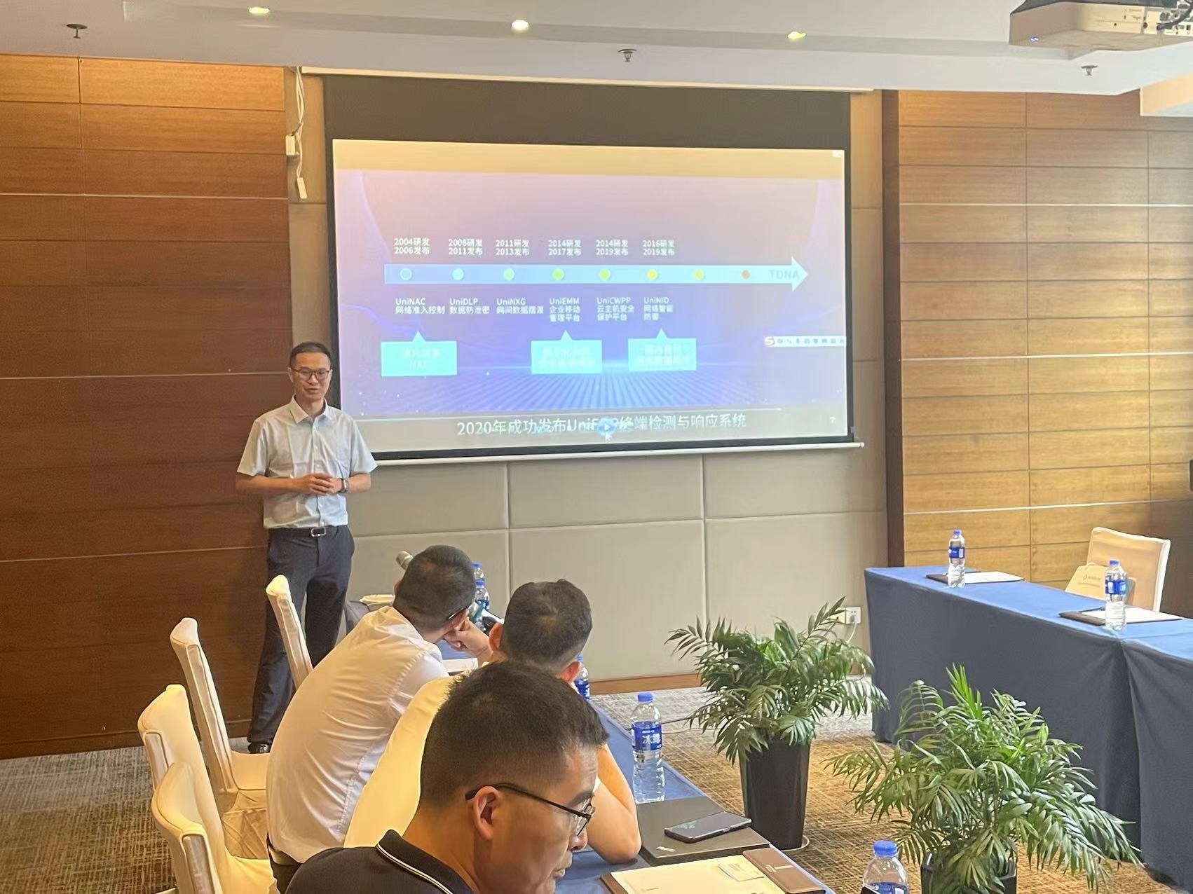 ▲联软科技售前副总监龚殷豪讲解网络安全底座方案
