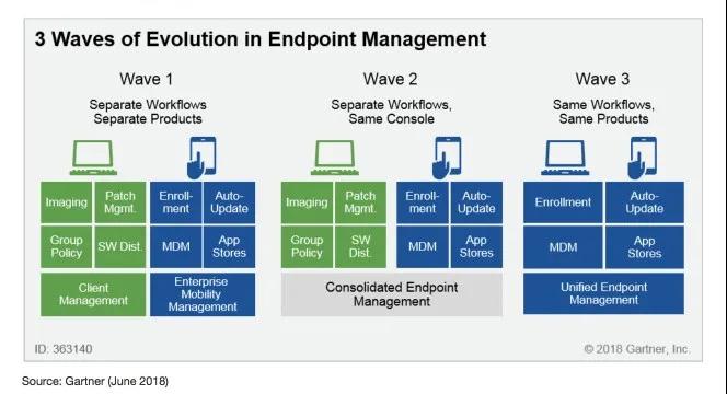 统一端点管理(Unified Endpoint Management,简称UEM)是Gartner定义的区分于EPP的另一个细分市场,初衷强调对包括异构的PC、移动端的统一管理。