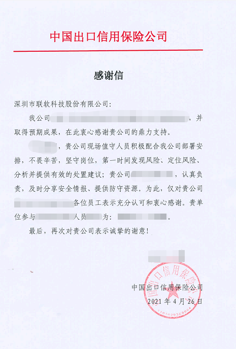 近日,联软科技收到多封感谢信,信中对我司在助力客户网络安全工作的大力支持和优异表现给予了高度赞扬。