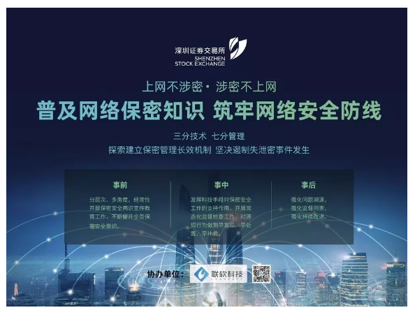 本次宣传周活动以“普及安全网络知识、筑牢网络安全防线”为主题,围绕数据安全、个人信息保护等方面的法律法规及标准,广泛宣传保密安全知识和技能,活动以线上线下相结合的形式展开。联软科技受邀协办了线下“深圳证券交易所2019年网络安全和保密国安体验日”的相关活动。