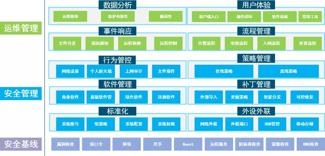 ●端点安全保护加固:通过运维管理、安全管理、安全基线构筑端点安全全面体系。